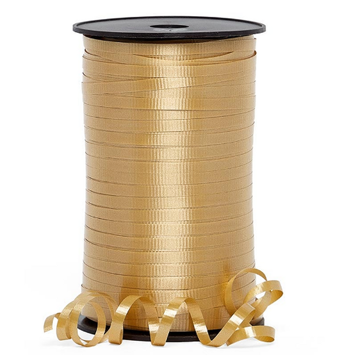 • 3/16" Flat Gold crimped curling ribbon spool for added effect to Christmas gifts, Easter Baskets, Birthdays, presents, and decorations