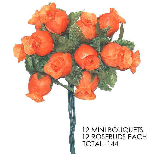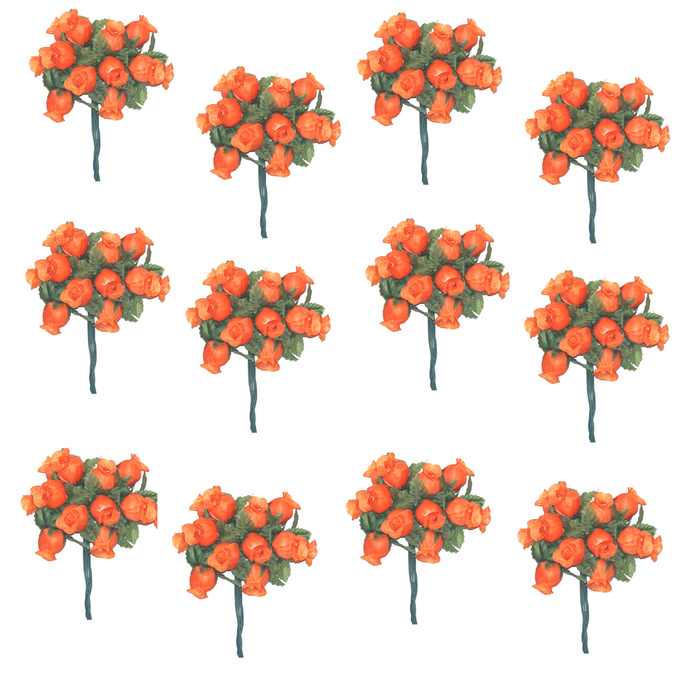 Orange Artificial Silk Flower Roses - 12 Mini Bouquets of 12 Rosebuds, 144 Rosebuds Total