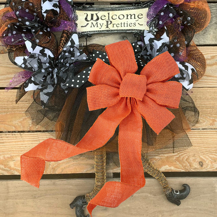 • Vintage Burlap Orange Ribbon Halloween Wreath Bow - Arrives Pre-Tied and ready for use! Wire in back for attaching anywhere!