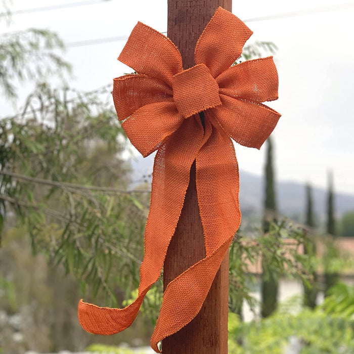 • Ribbon for Gift Wrapping - Rustic Orange Burlap Ribbon Christmas Bow for Decoration - 10 inches wide and 18 inches long from top of the bow to the bottom of the tails