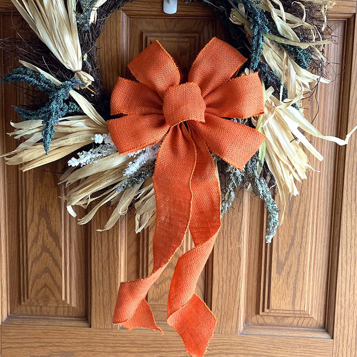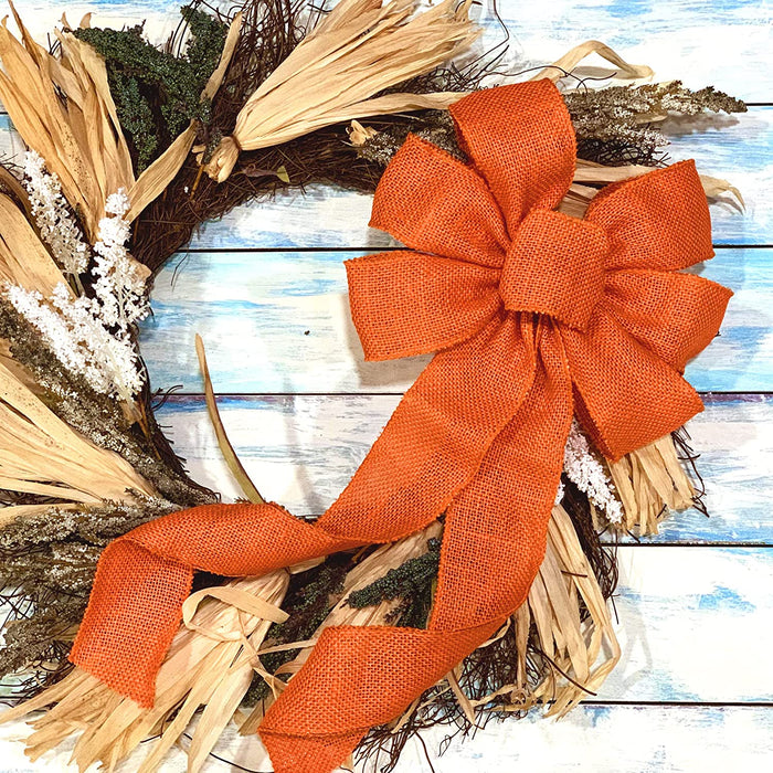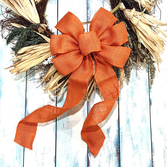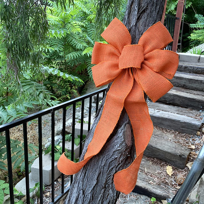 Orange Burlap Wreath Bow - 10" Wide, 18" Long Tails