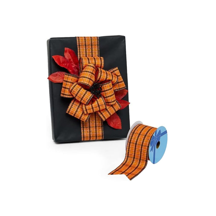 • Ribbon for Gift Wrapping - Orange, Black and Yellow Tartan Wire Ribbon Roll at 2.5 inch wide and 10 yards long for your Spring, Fall, Halloween and Thanksgiving Decor!
