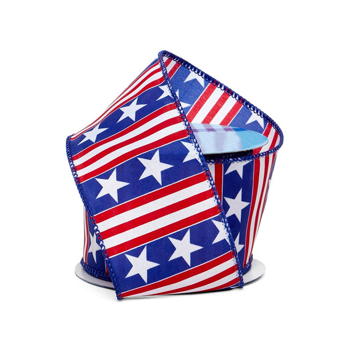 Patriotic Stars & Stripes Wired Ribbon - 2 1/2" x 10 Yards
