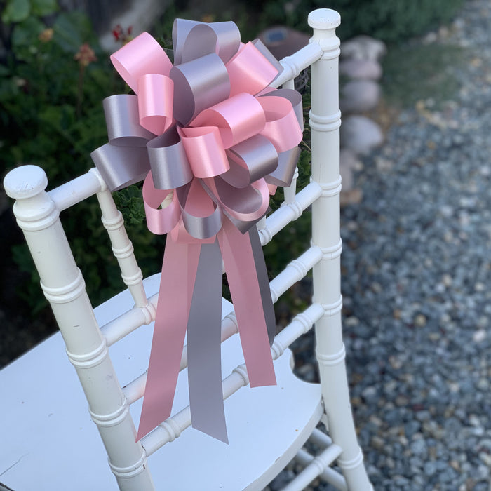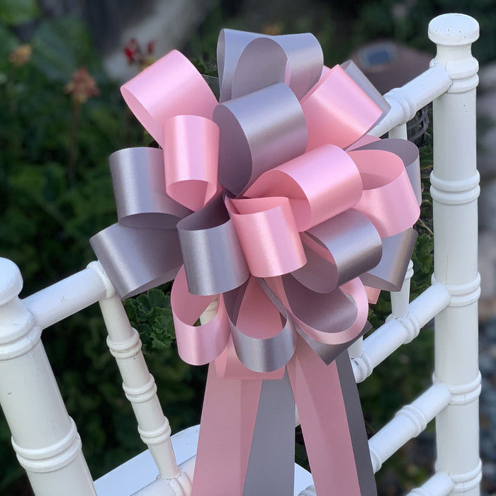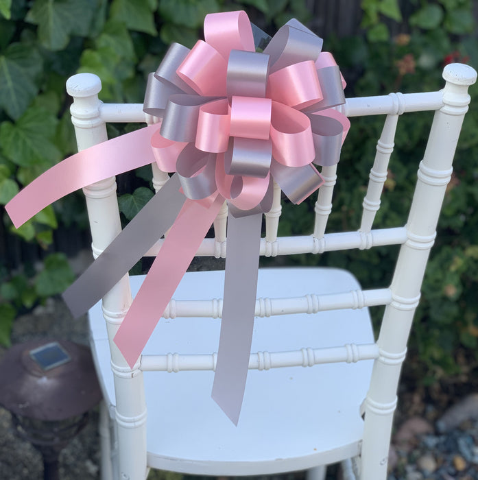 Pink and Silver Pull Bows - 8" Wide, Set of 6