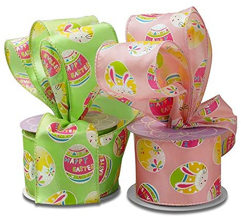 Pink Easter Egg Wired Ribbon - 2 1/2" x 10 Yards