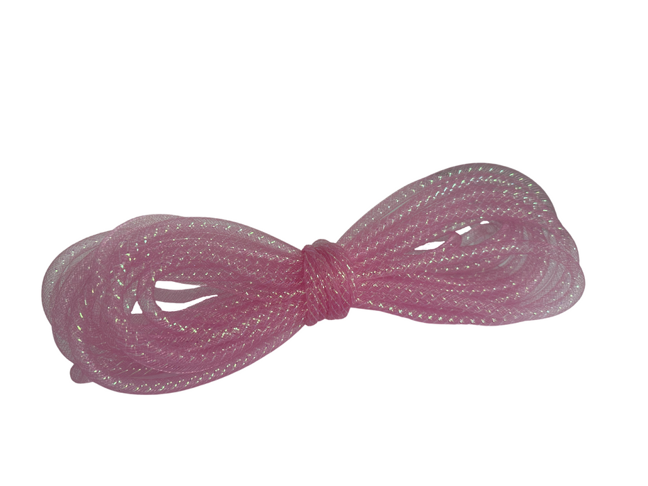 Pink Iridescent Deco Mesh Tubing - 8mm x 15 Yards, Breast Cancer Awareness Decor, Wreath, DIY, Arts & Crafts, Wedding, Bouquet, Bows, Christmas, Valentine's Day, Easter