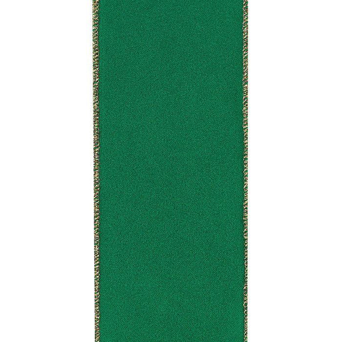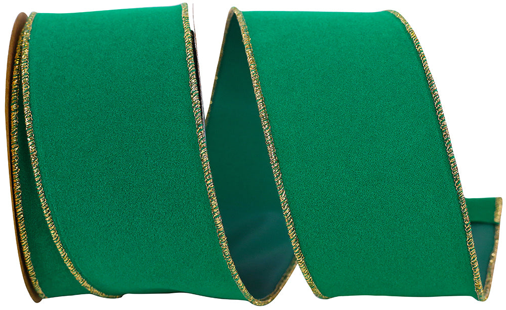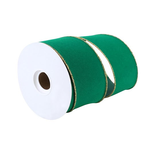 Gold Edge Green Velvet Ribbon - 2 1/2" x 10 Yards, Wired Edges