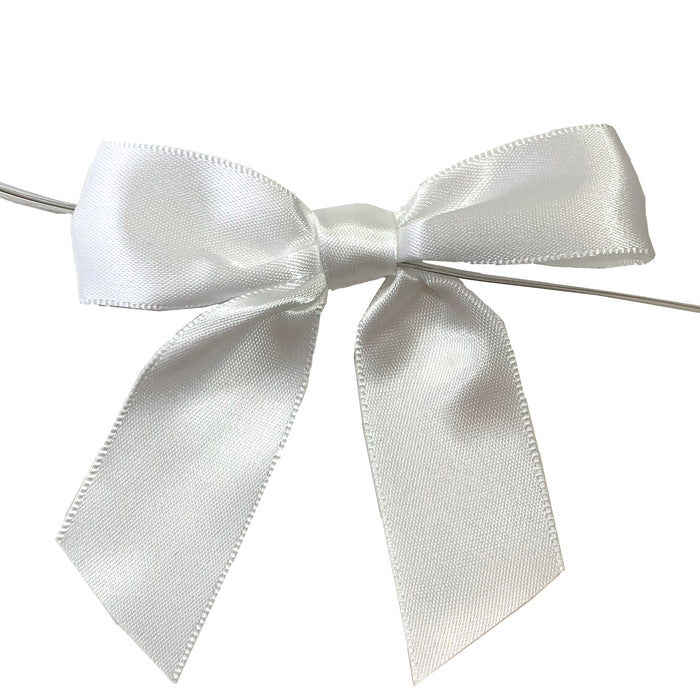 Pre-Tied White Satin Bows - 4 1/2" Wide, Set of 12