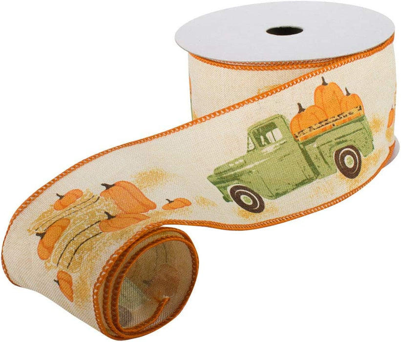 Pumpkin Pickup Truck Wired Ribbon - 2 1/2" x 10 Yards