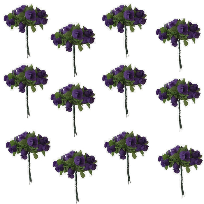 Purple Artificial Silk Mini Roses - 12 Dozens, 144 Rosebuds Total
