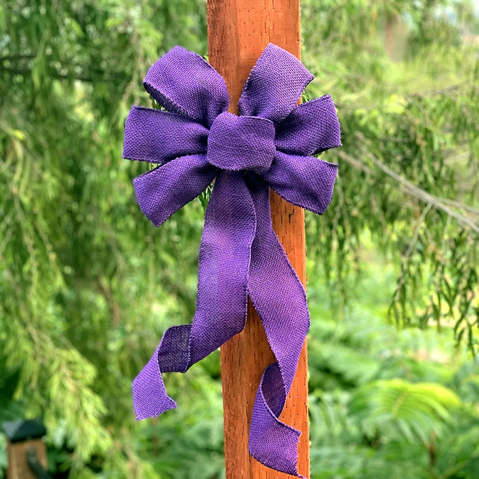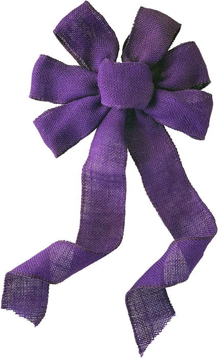 Purple Burlap Wreath Bow - 10" Wide, 18" Long Tails