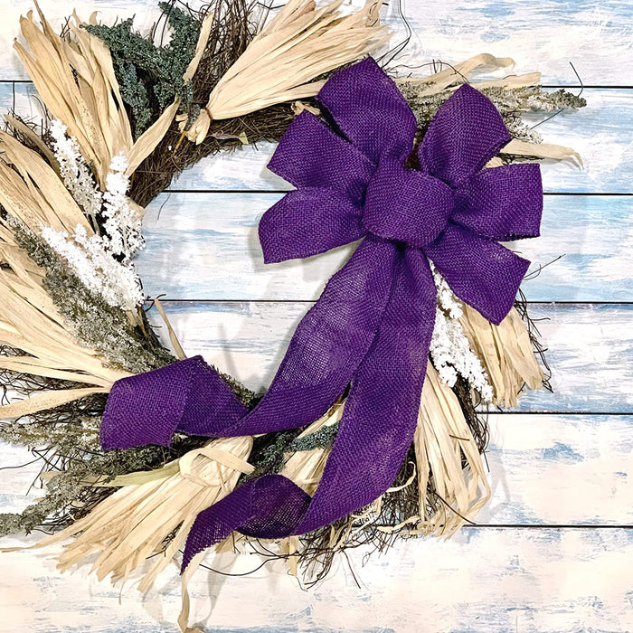 - Farmhouse Decor Comprised of Purple natural hessian jute Fabric - Looks great on doors and makes a great BBQ Centerpiece, Door Decoration and Mardi Gras Accent!