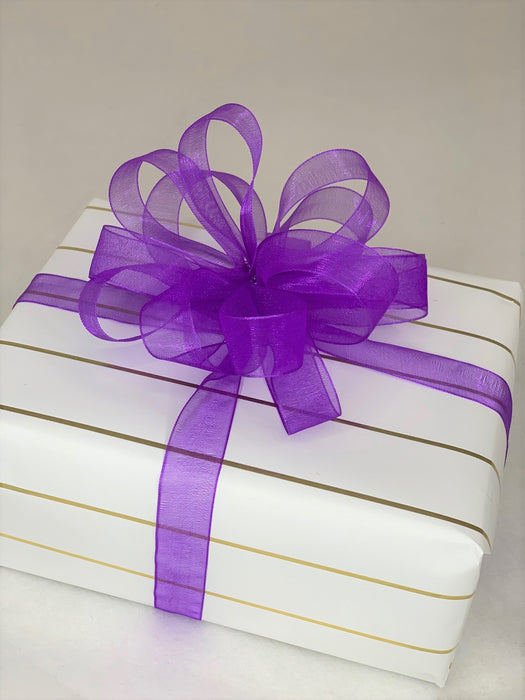 - Ribbon for Gift Wrapping - Shimmering Sheer Purple Ribbon - Soft sheer iridescent Organza 5/8 inch wide by 25 Yards- Perfect for Weddings, Receptions, Christmas, Mardi Gras and all your party decorating needs