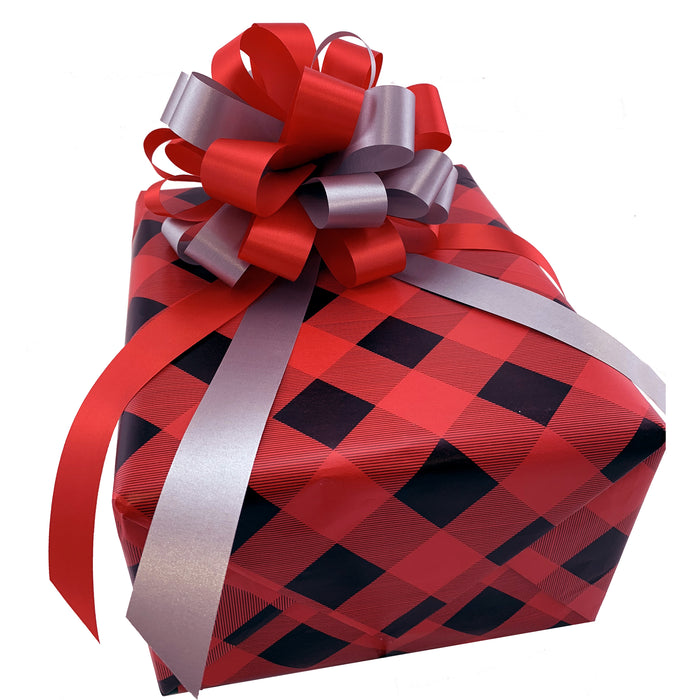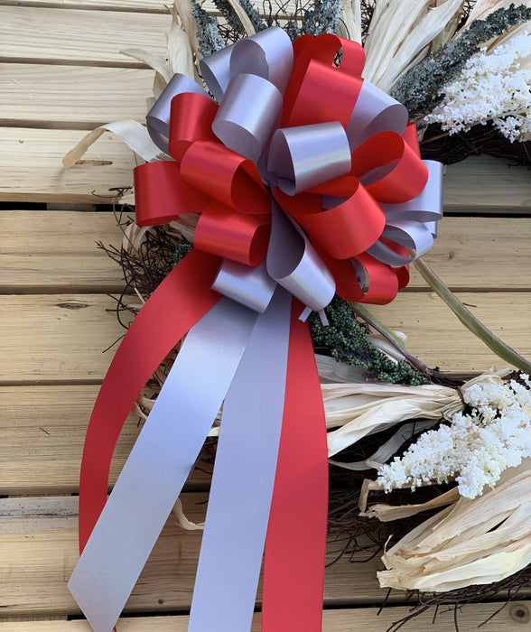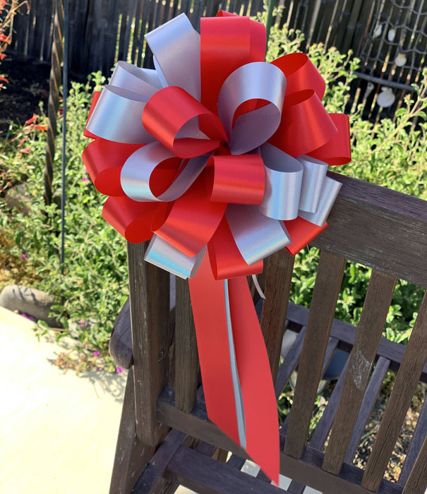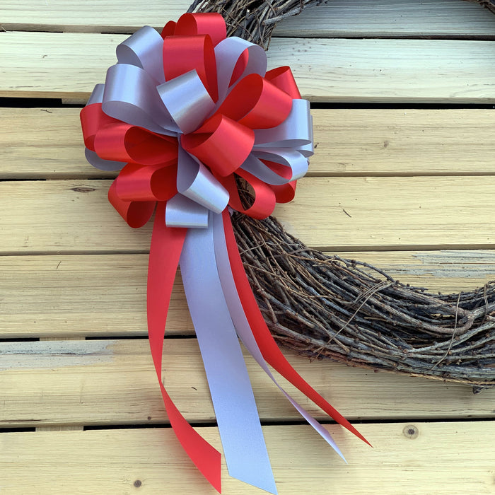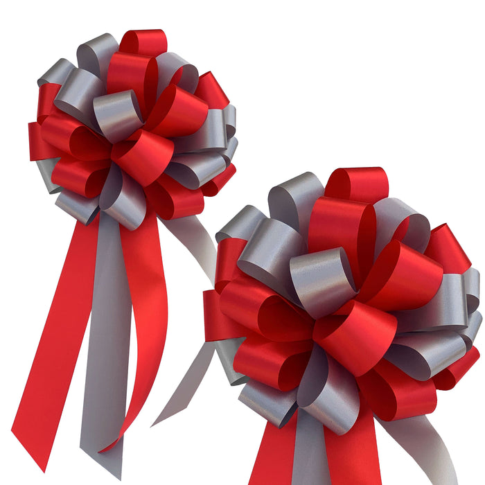 Red and Silver Pull Bows - 8" Wide, Set of 6, Wedding Pew Decorations