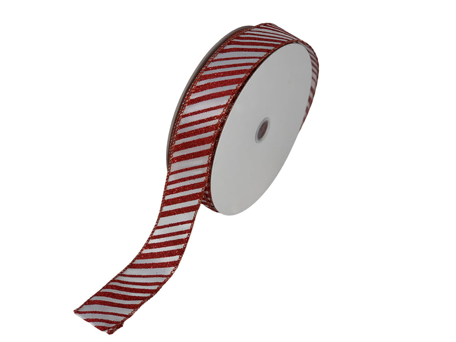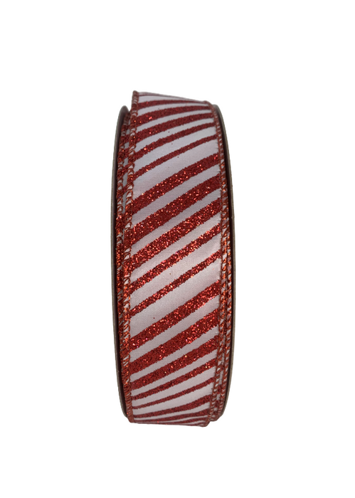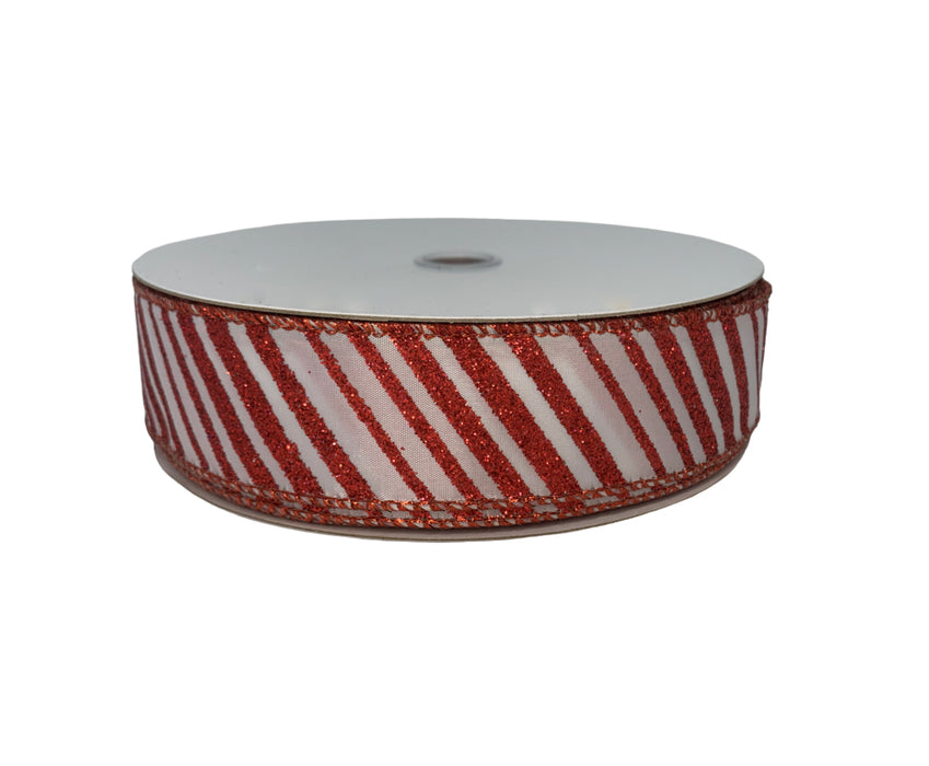 Red Glitter Stripes Wired Ribbon - 4" x 10 Yards, Red White Candy Cane