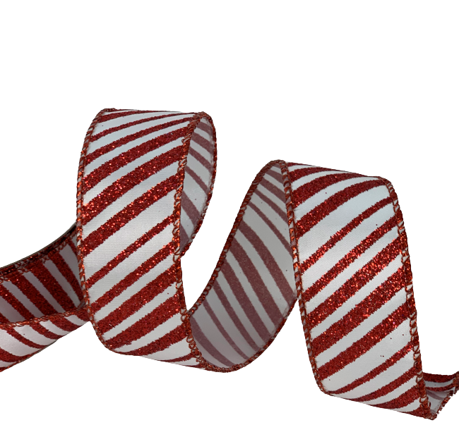 • Sparkly Red Glitter and White Candy Cane Stripes Ribbon – Perfect for gift baskets, bows, and wrapping presents to make them sparkle!