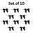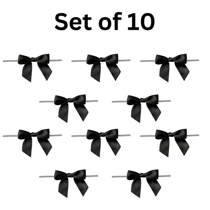Black Satin Pretied Gift Bows - Set of 10, 3" Wide