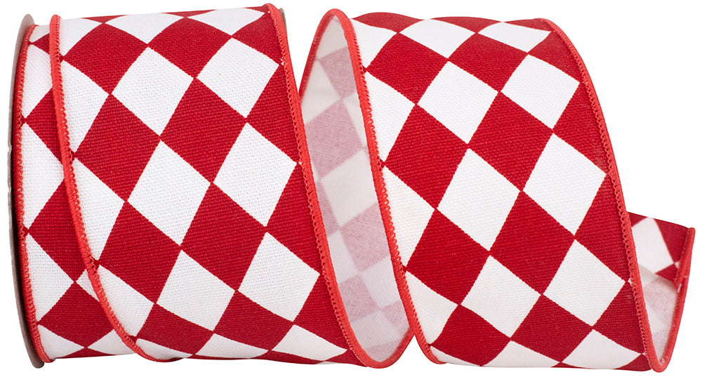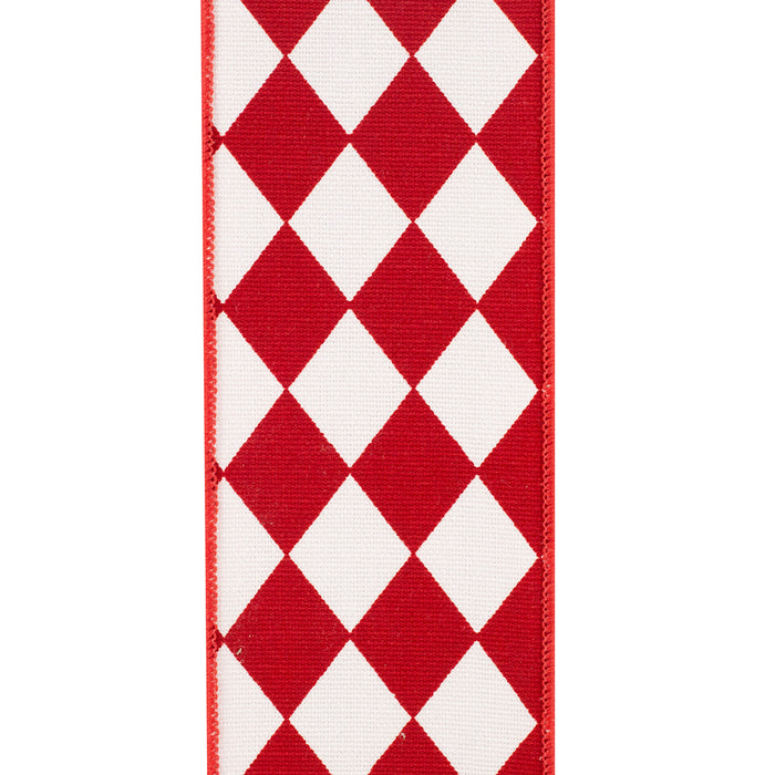 Red White Diamonds Harlequin Ribbon - 2 1/2" x 10 Yards