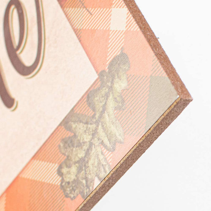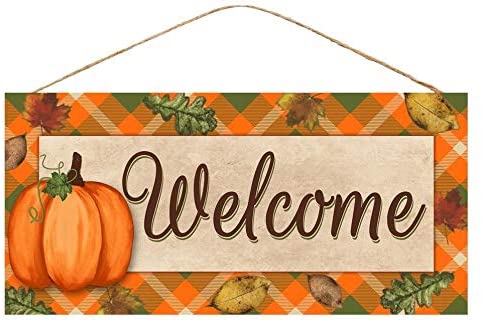 - Vintage 12.5" x 6" greeting sign with festive argyle plaid backdrop and a rustic orange pumpkin that make it ideal for occasions like Halloween, Thanksgiving and Fall! Made of MDF wood.