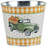 - Festive Autumn Tin with a Orange and White Buffalo Plaid Print broken up by a White banner with Polka Dots and Green Borders and a set of Fall Harvest Pumpkins in the bed of a Rustic Green Pick Up Truck!