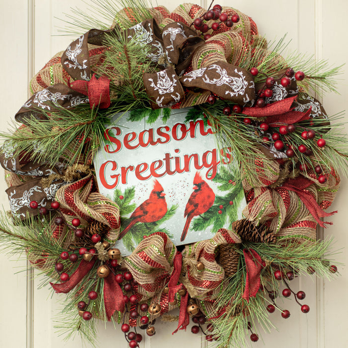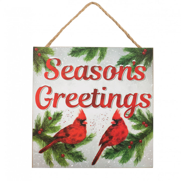 Season's Greetings Cardinals Christmas Sign - 10" x 10"
