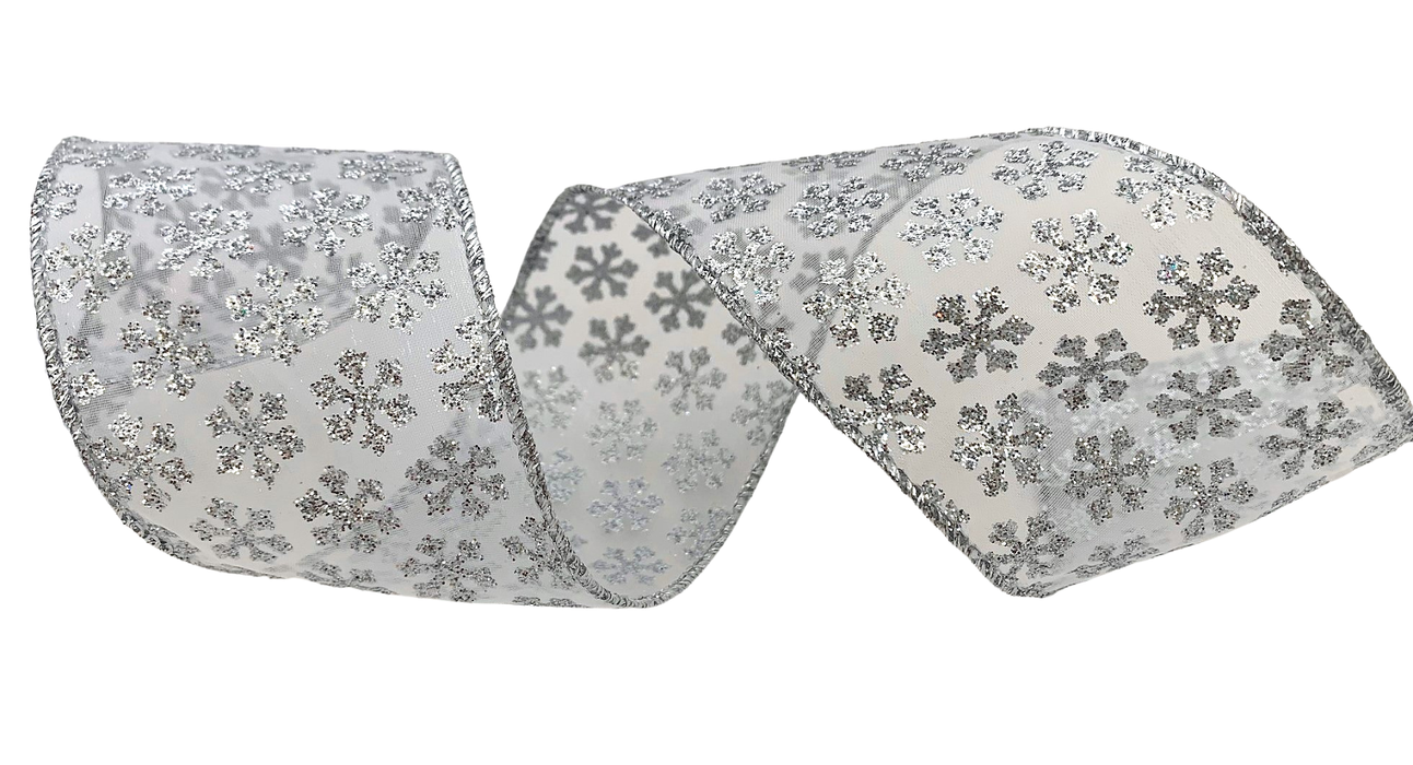 - Ribbon for Gift Wrapping - Dozens of Silver Glitter Snowflakes on Sheer White Ribbon perfect for Wreaths, Garlands and Swags!