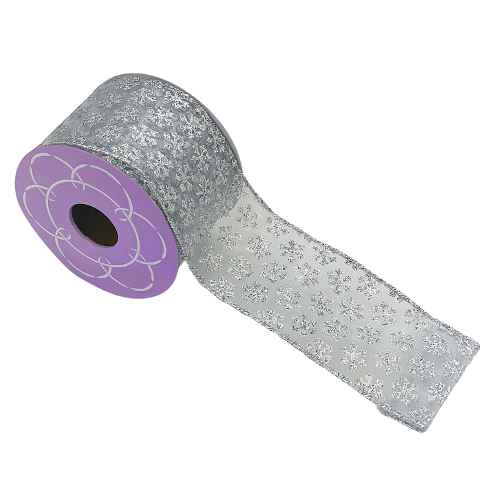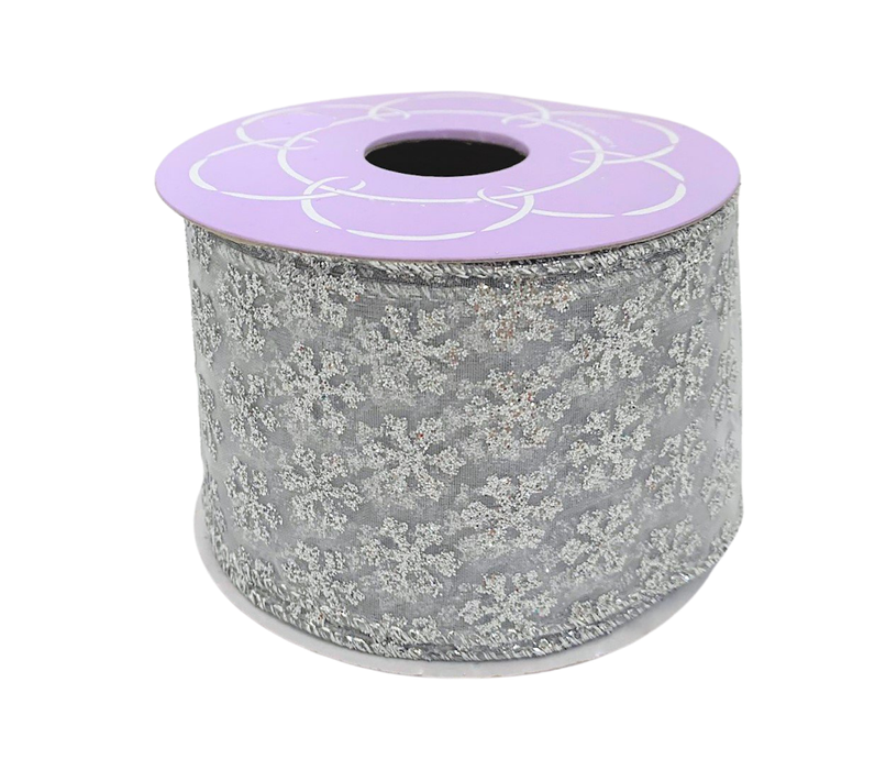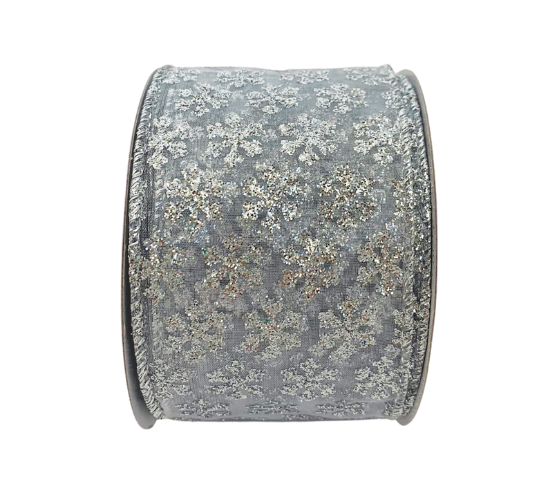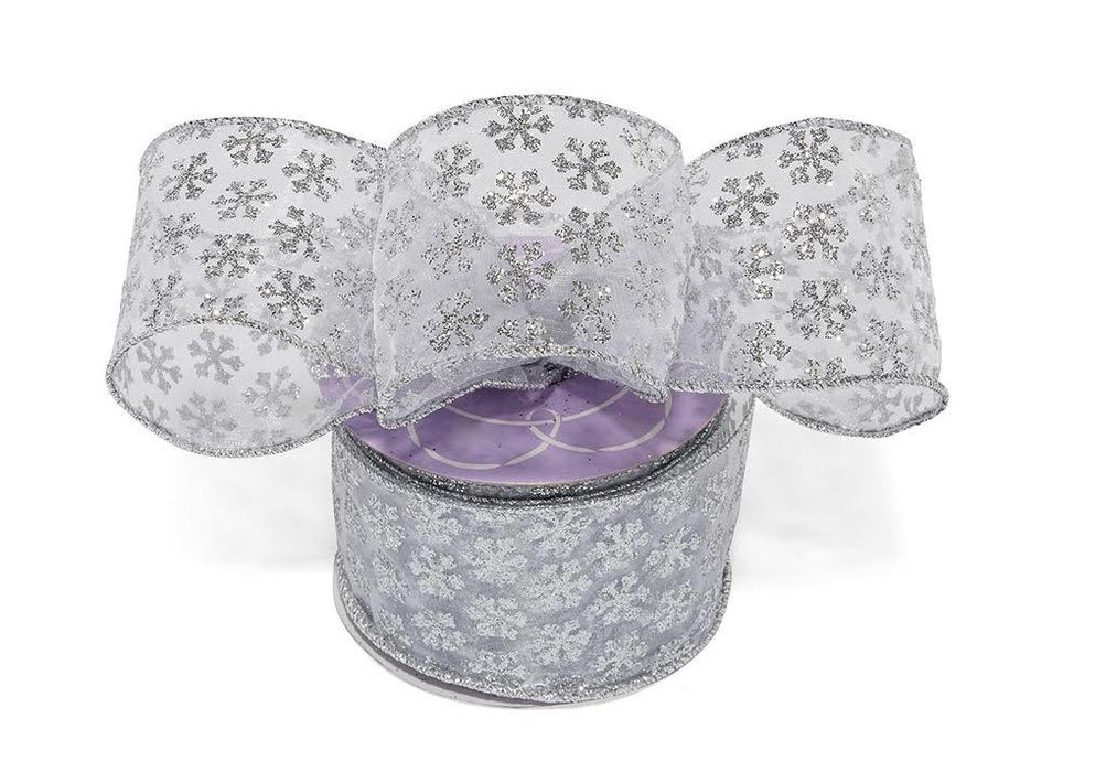 Sheer Silver Snowflakes Christmas Ribbon - 2 1/2" x 10 Yards