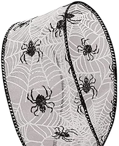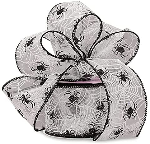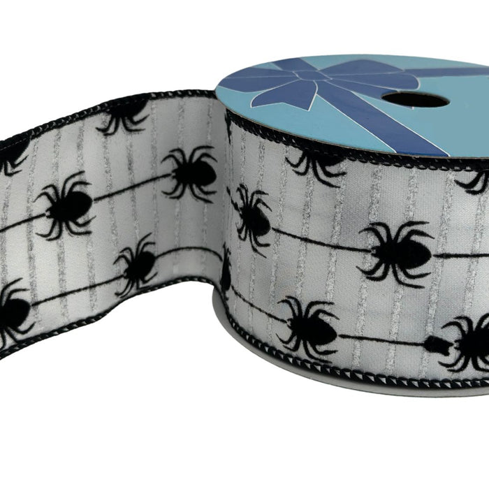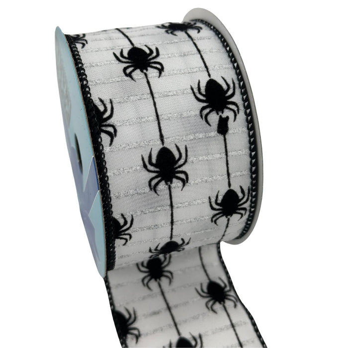 Halloween Spider Stripes Wired Ribbon - 2 1/2" x 10 Yards, White & Black, Spiders, Bows, Wreath, Halloween