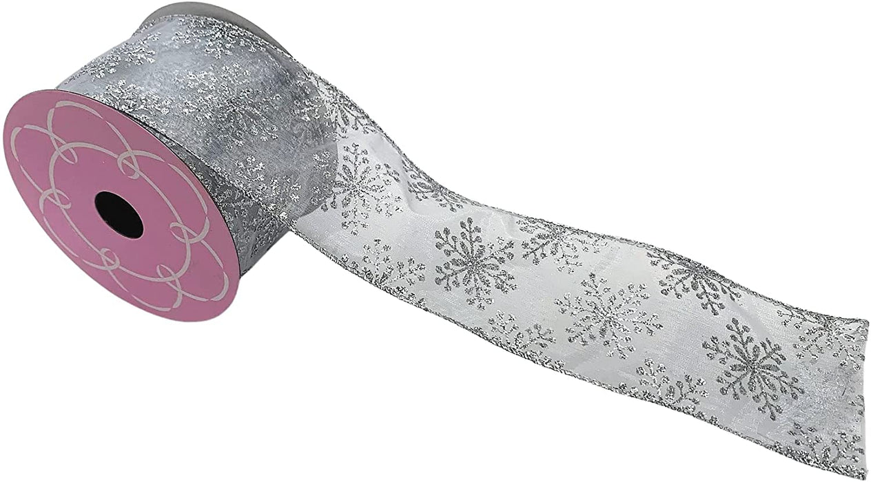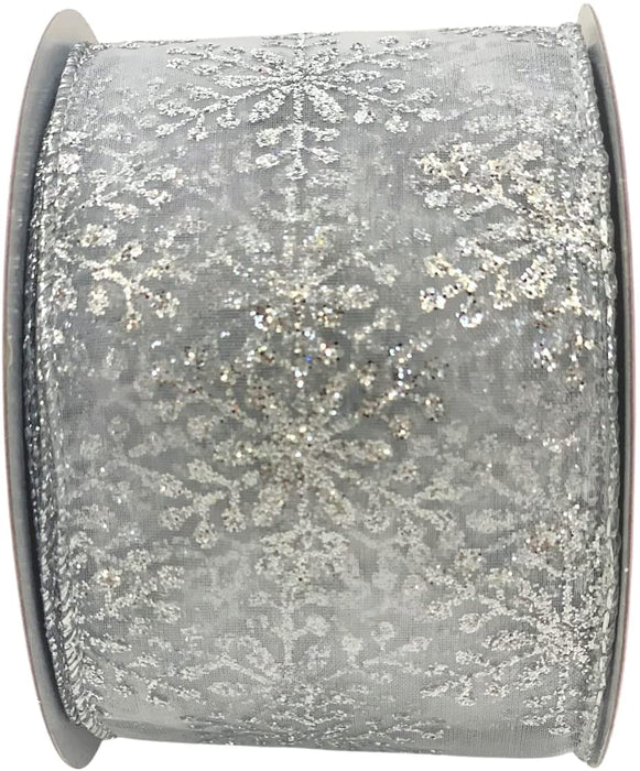 Silver Snowflake Sheer Christmas Ribbon - 2 1/2" x 10 Yards