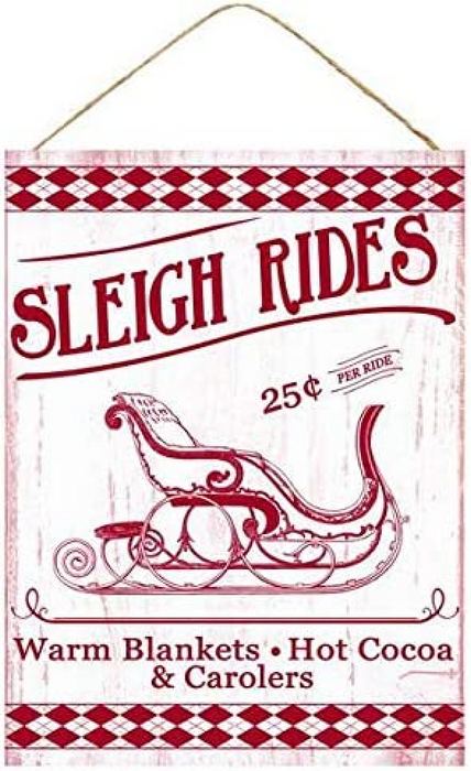 Vintage Christmas Sleigh Rides Sign - 15.75" x 11.75"