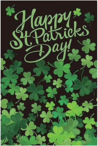 - Lucky and Festive 12 x 18 inch Saint Paddys Day House Flag with Green St Patricks Day Clovers and the greeting "Happy St. Patrick's Day" written in fun font on the top!