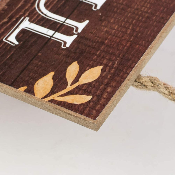 - Wooden sign with a thick jute rope string for hanging inside and out - Pairs great with burlap and natural colored ribbon!