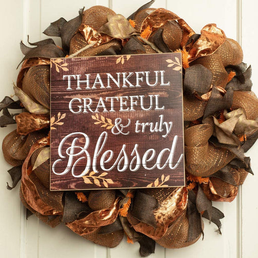 Thankful Grateful & Truly Blessed Sign - 12" x 12"