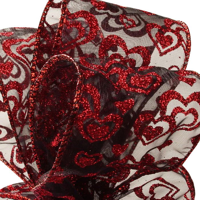 Valentine Glitter Hearts Sheer Ribbon – 2 1/2" x 10 Yards
