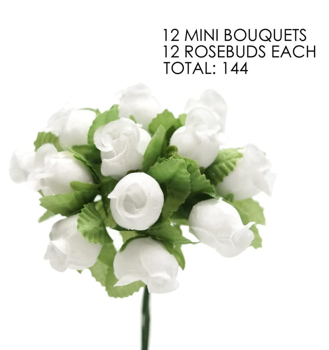 White Artificial Silk Mini Roses - 12 Dozens, 144 Rosebuds Total