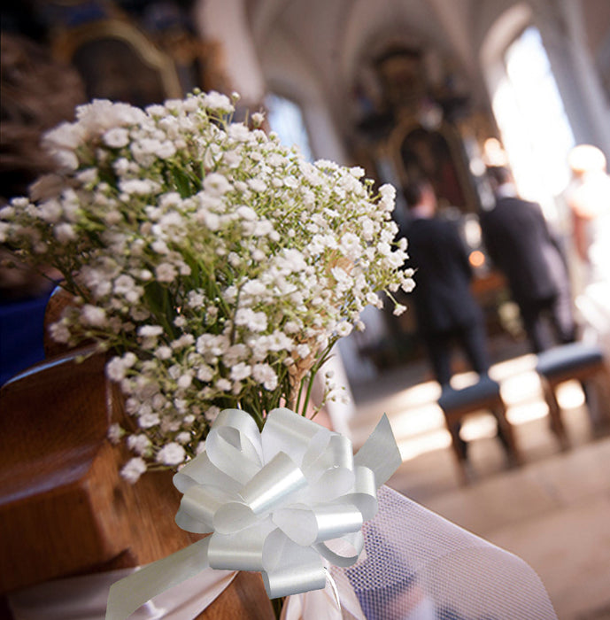 White Decorative Gift Pull Bows - 5" Wide, Set of 10
