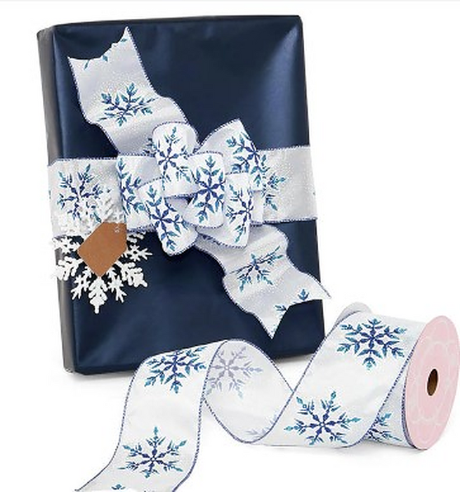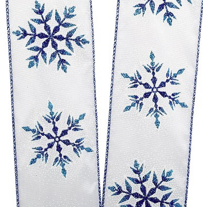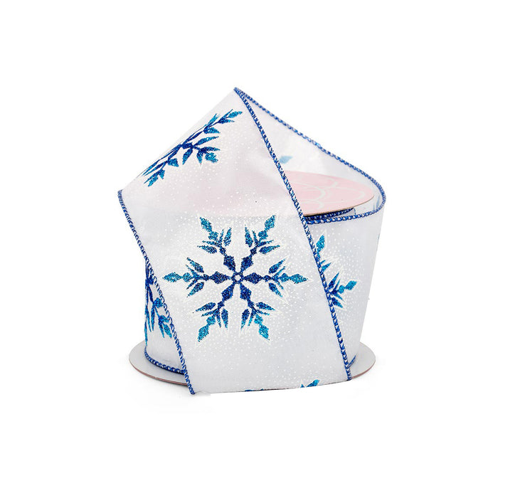 Blue Christmas Snowflakes Wired Ribbon - 2 1/2" x 10 Yards
