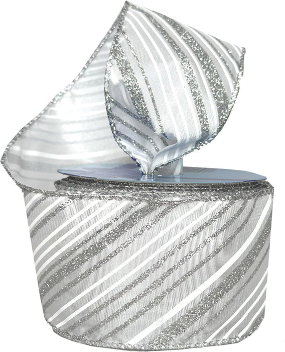 Silver Glitter Striped Wired Ribbon - 2 1/2" x 10 Yards