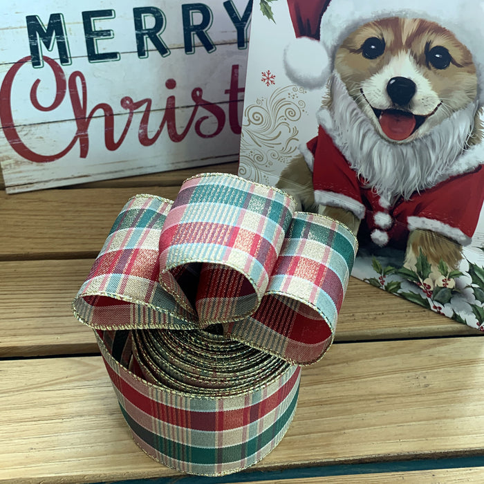 Wired Plaid Christmas Wreath Ribbon - 2 1/2" x 10 Yards