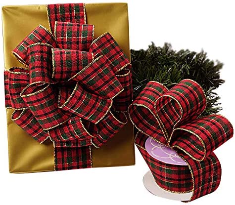 - 100% polyester gold stitched wired edge Classic Pattern Plaid Holiday Ribbon – Perfect for gift baskets, bows wreaths, swags, Christmas arrangements, and wrapping presents to make them sparkle!