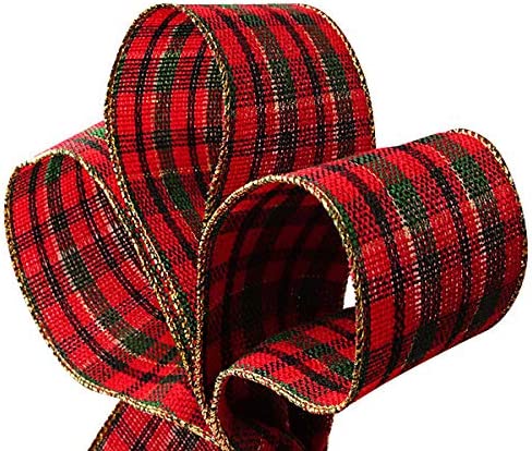 - Ribbon for Gift Wrapping - Christmas Red and Black Tartan ribbon with gold stitched wire edges in a roll 2.5 inch wide by 10 yds for all your holiday craft and Christmas Decorations