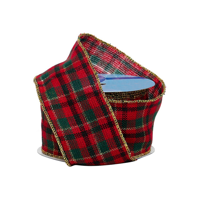 Wired Tartan Christmas Wreath Ribbon - 2 1/2" x 10 Yards